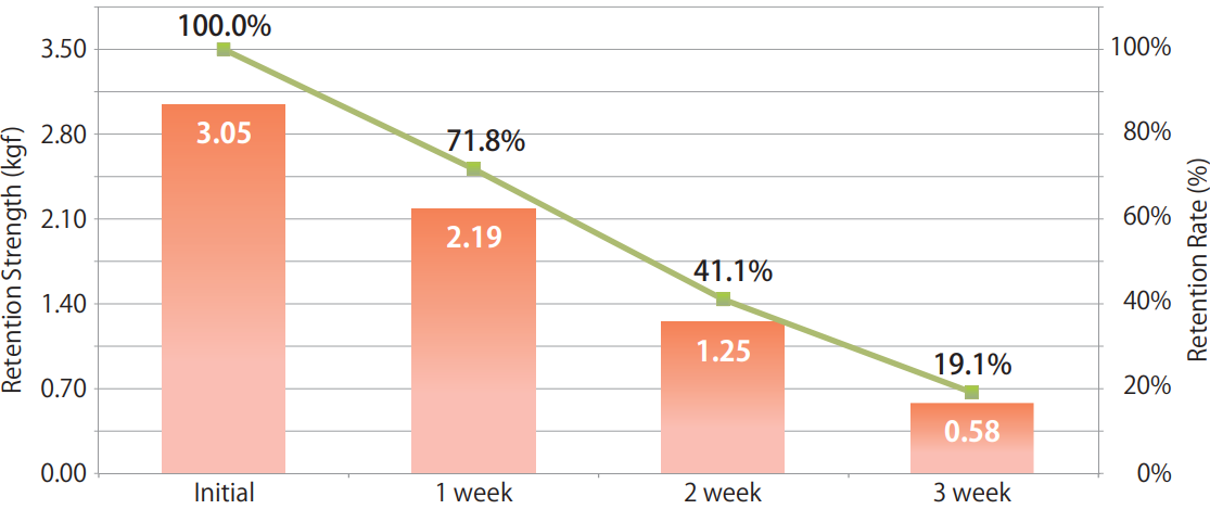 | In vitro retention of strength: | 41% at 2 weeks |